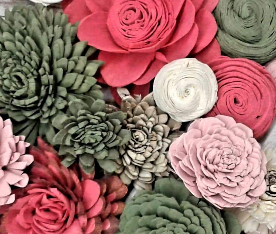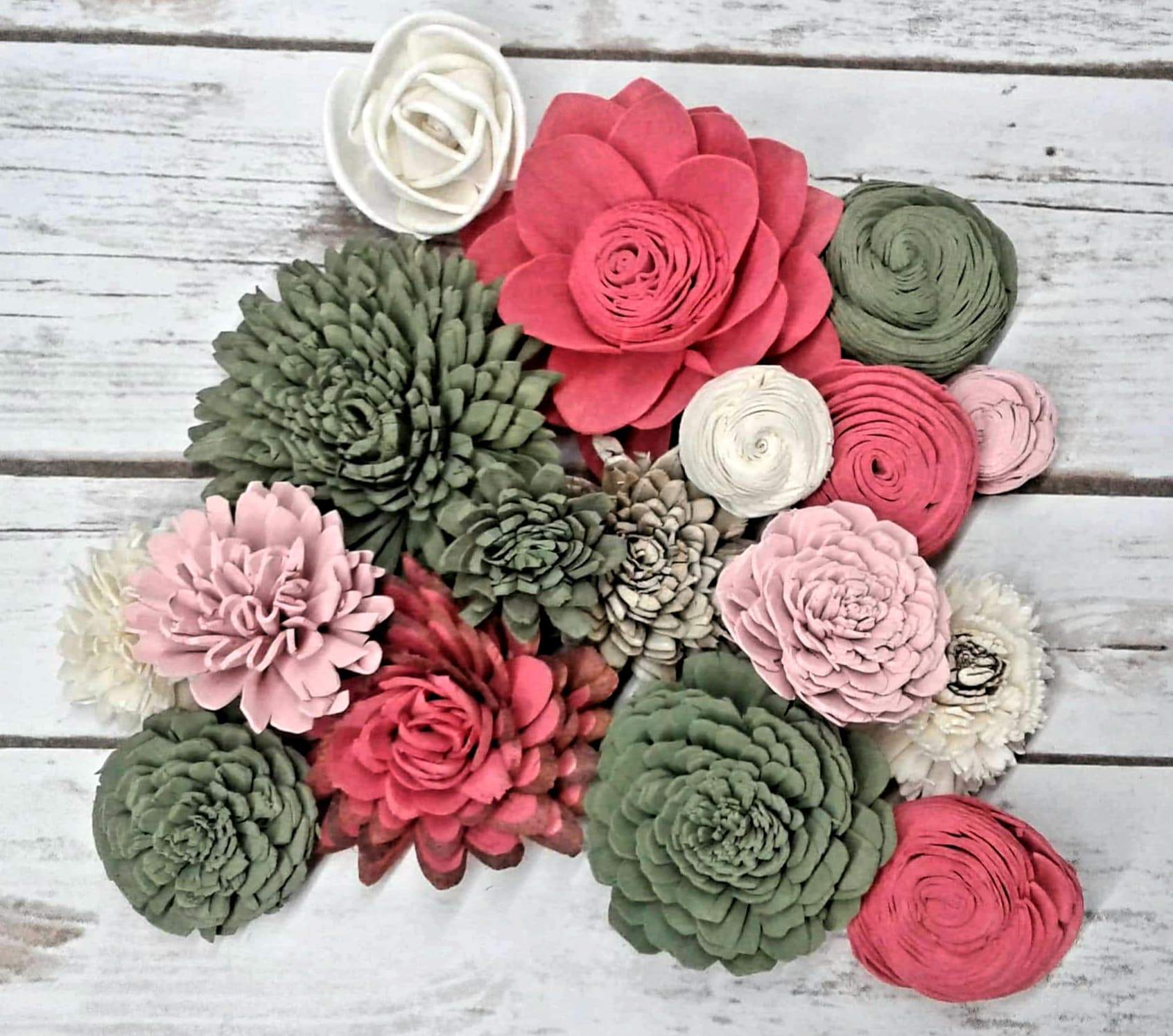 Check out this BEAUTIFUL wood flower colored assortment! With a Variety of Flowers ranging in sizes 1"-4".Make sure you pick if you would like raw flowers added to the colors in the assortment or no raw flowers.