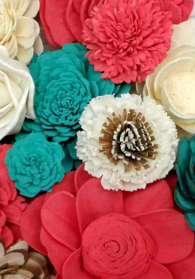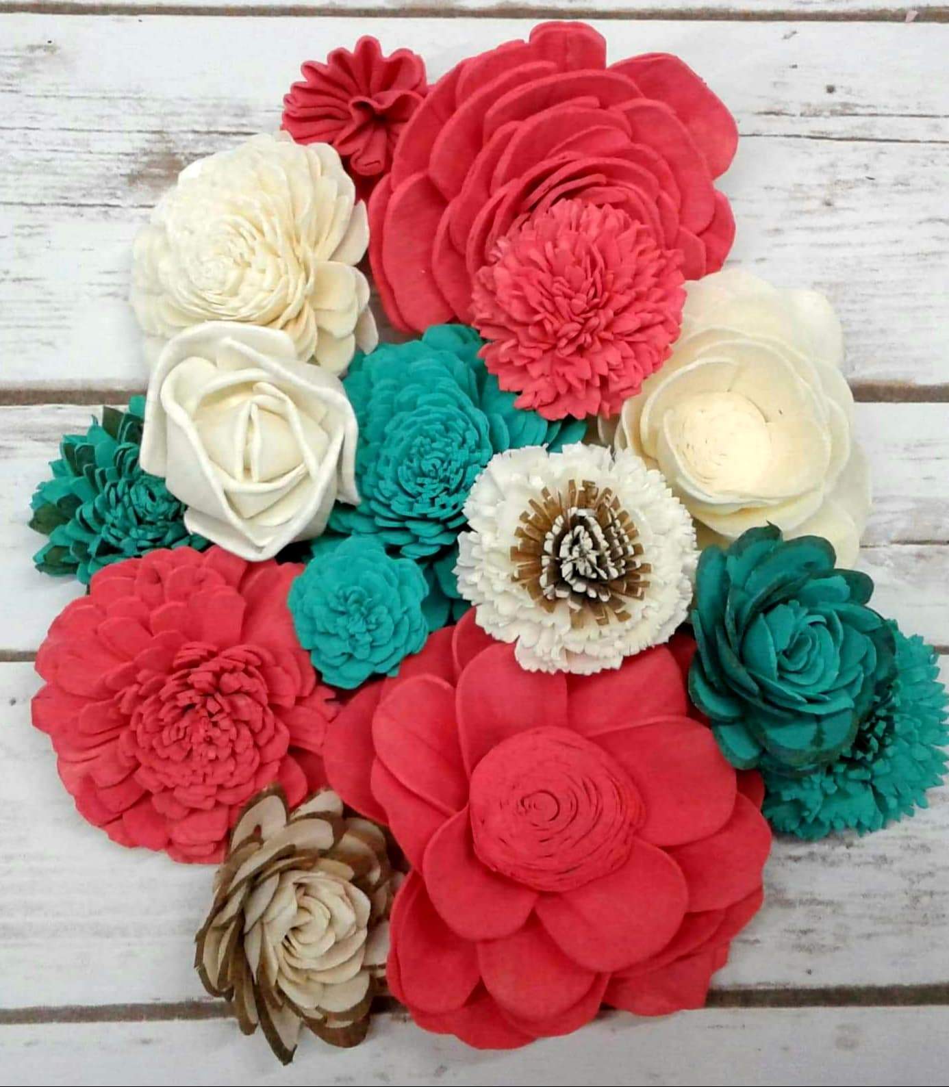 Check out this BEAUTIFUL wood flower colored assortment! With a Variety of Flowers ranging in sizes 1"-4".Make sure you pick if you would like raw flowers added to the colors in the assortment or no raw flowers.