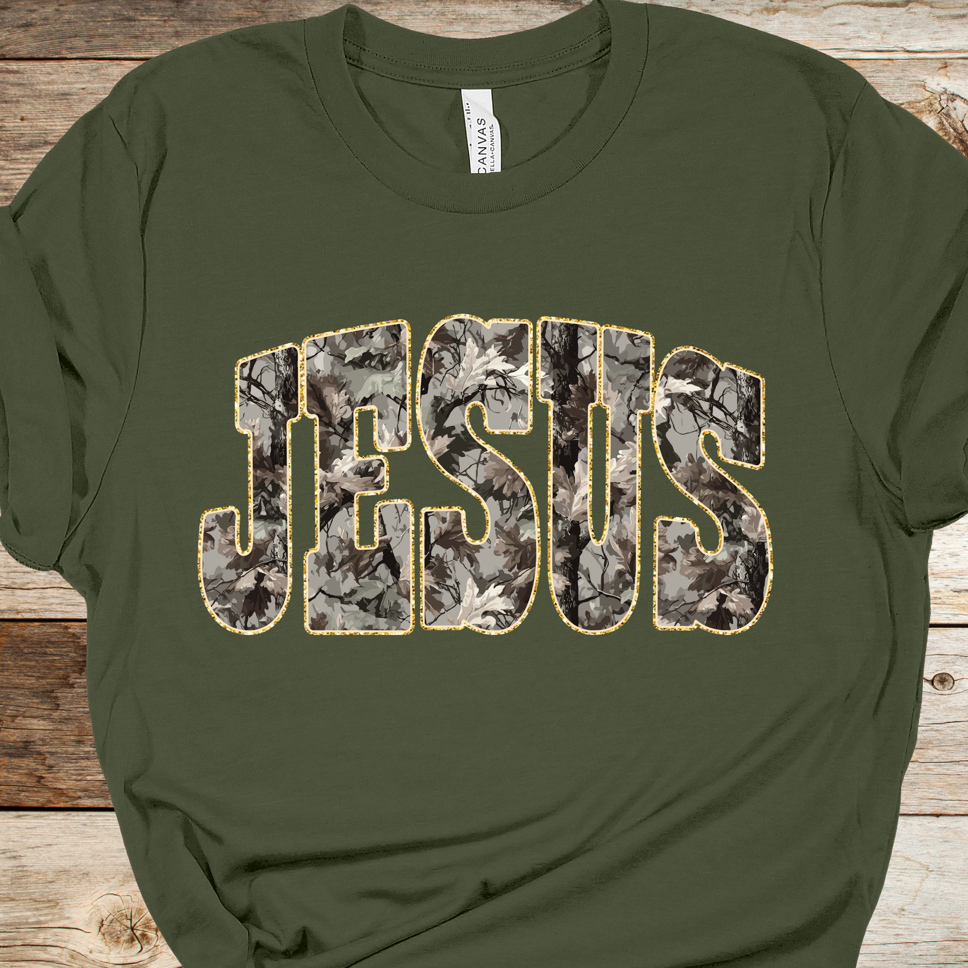 Camo Jesus Green Graphic Tee
