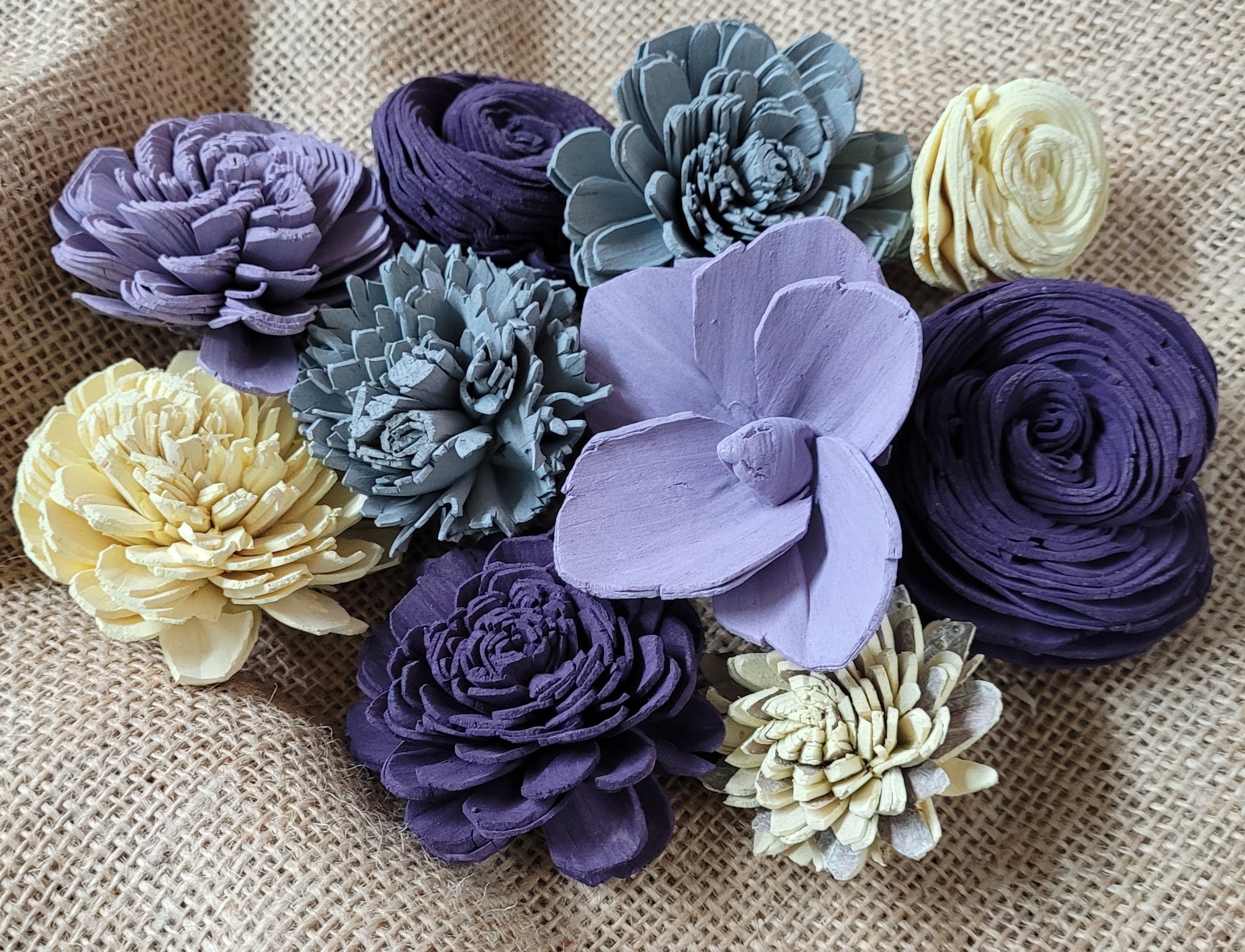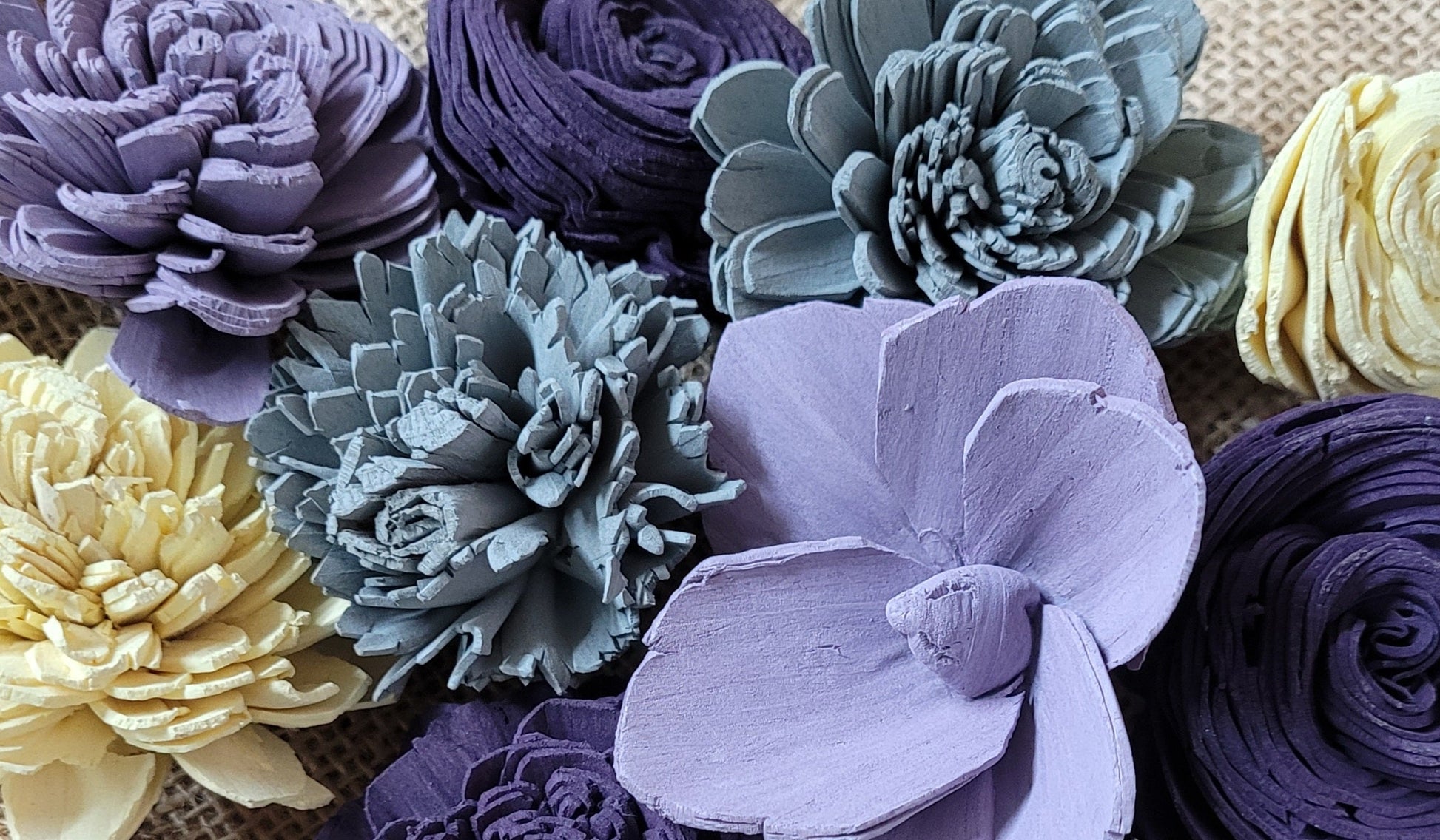 Check out this BEAUTIFUL wood flower colored assortment! With a Variety of Flowers ranging in sizes 1"-4".Make sure you pick if you would like raw flowers added to the colors in the assortment or no raw flowers.