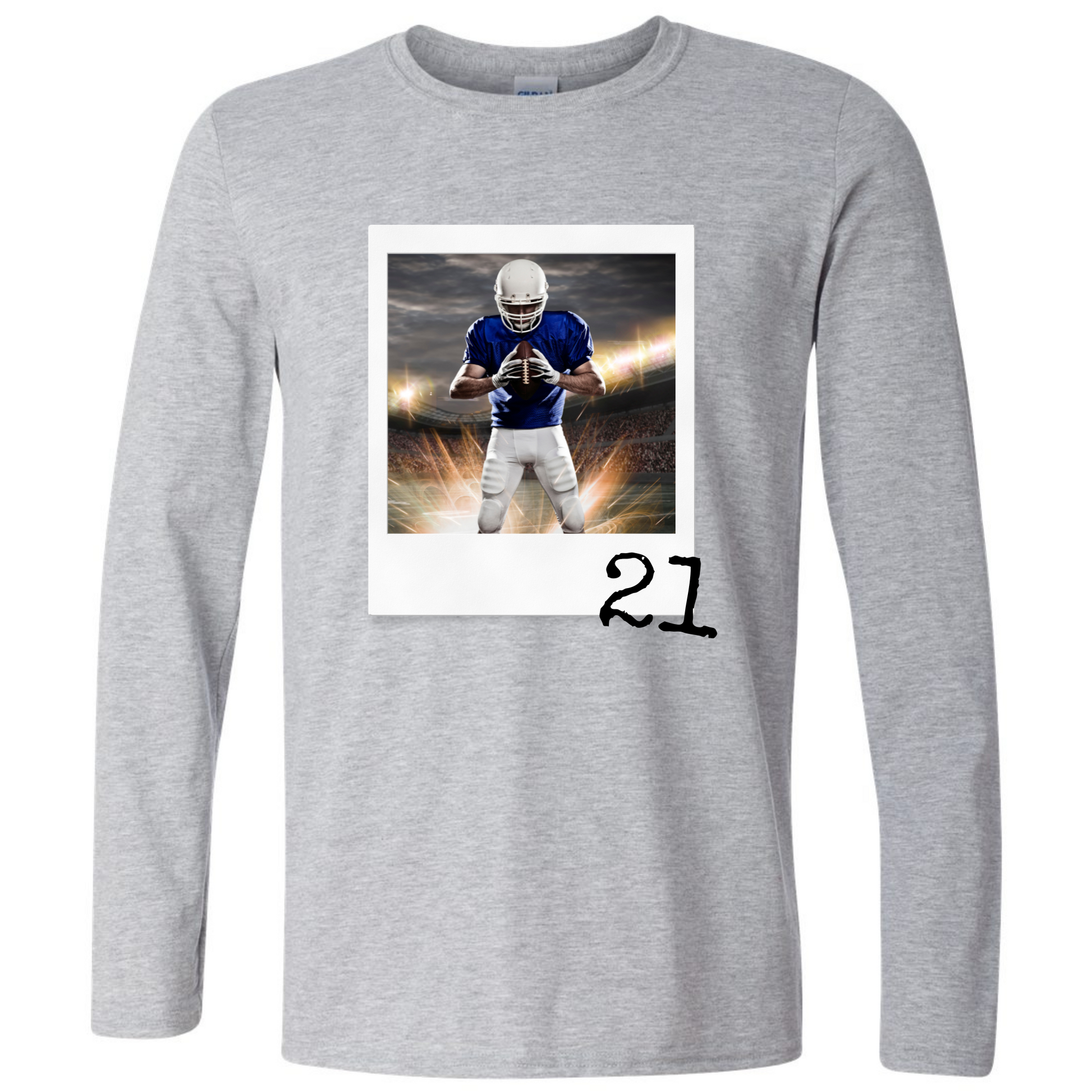 Custom Football Photo and Number Long Sleeve Graphic Tee