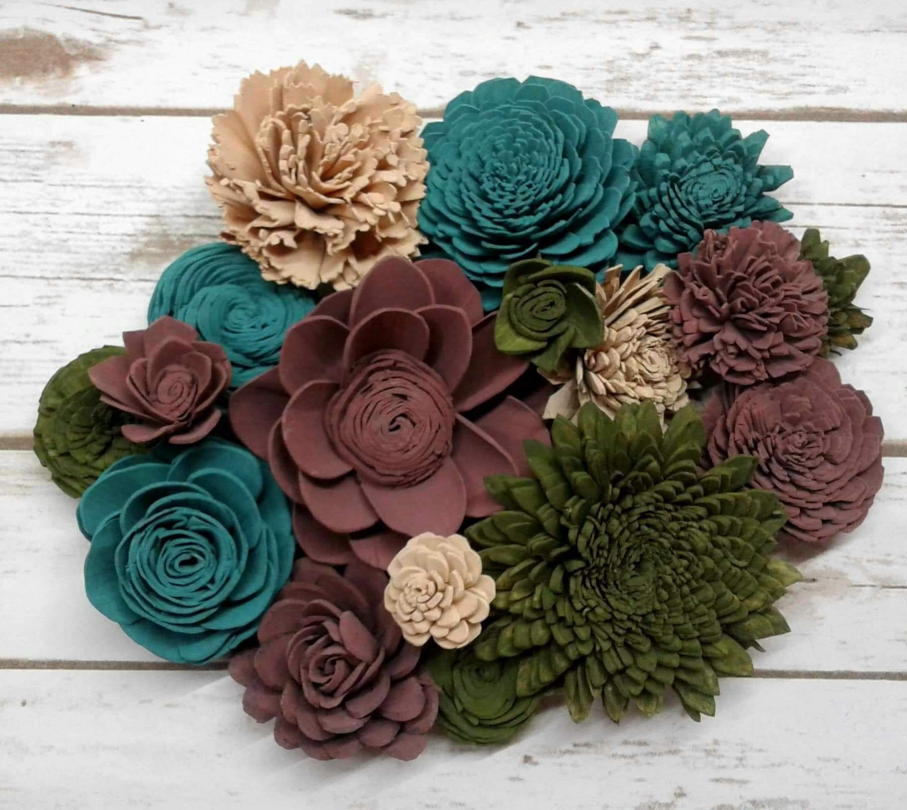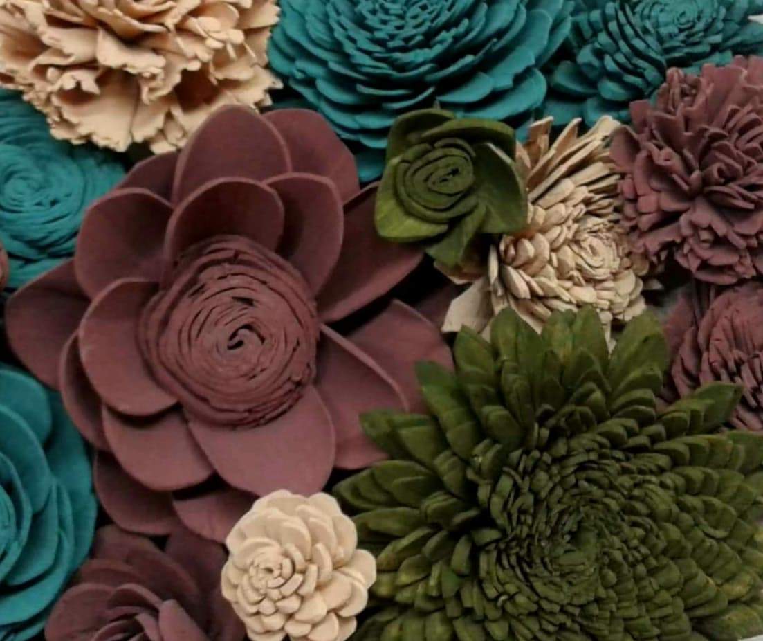 Check out this BEAUTIFUL wood flower colored assortment! With a Variety of Flowers ranging in sizes 1"-4".Make sure you pick if you would like raw flowers added to the colors in the assortment or no raw flowers.