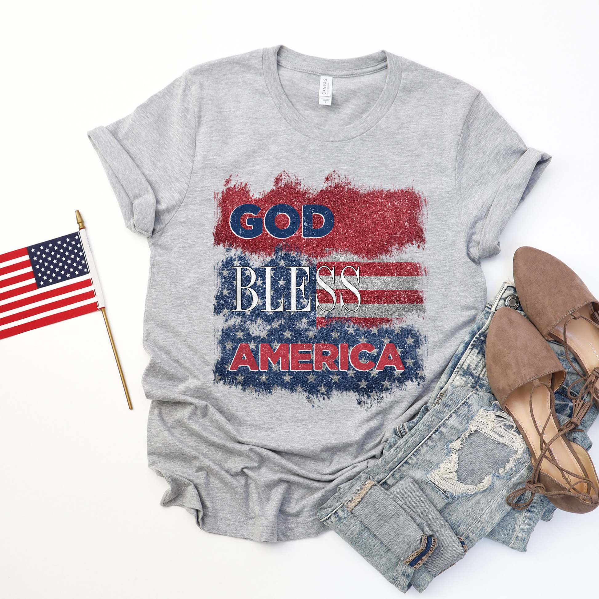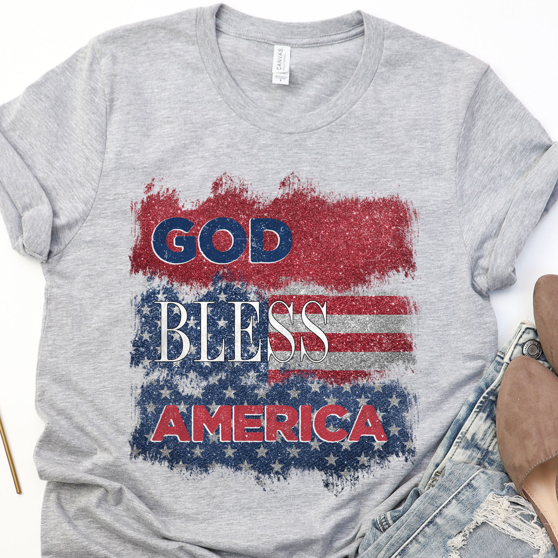 God Bless America Glitter Grey Graphic Tee