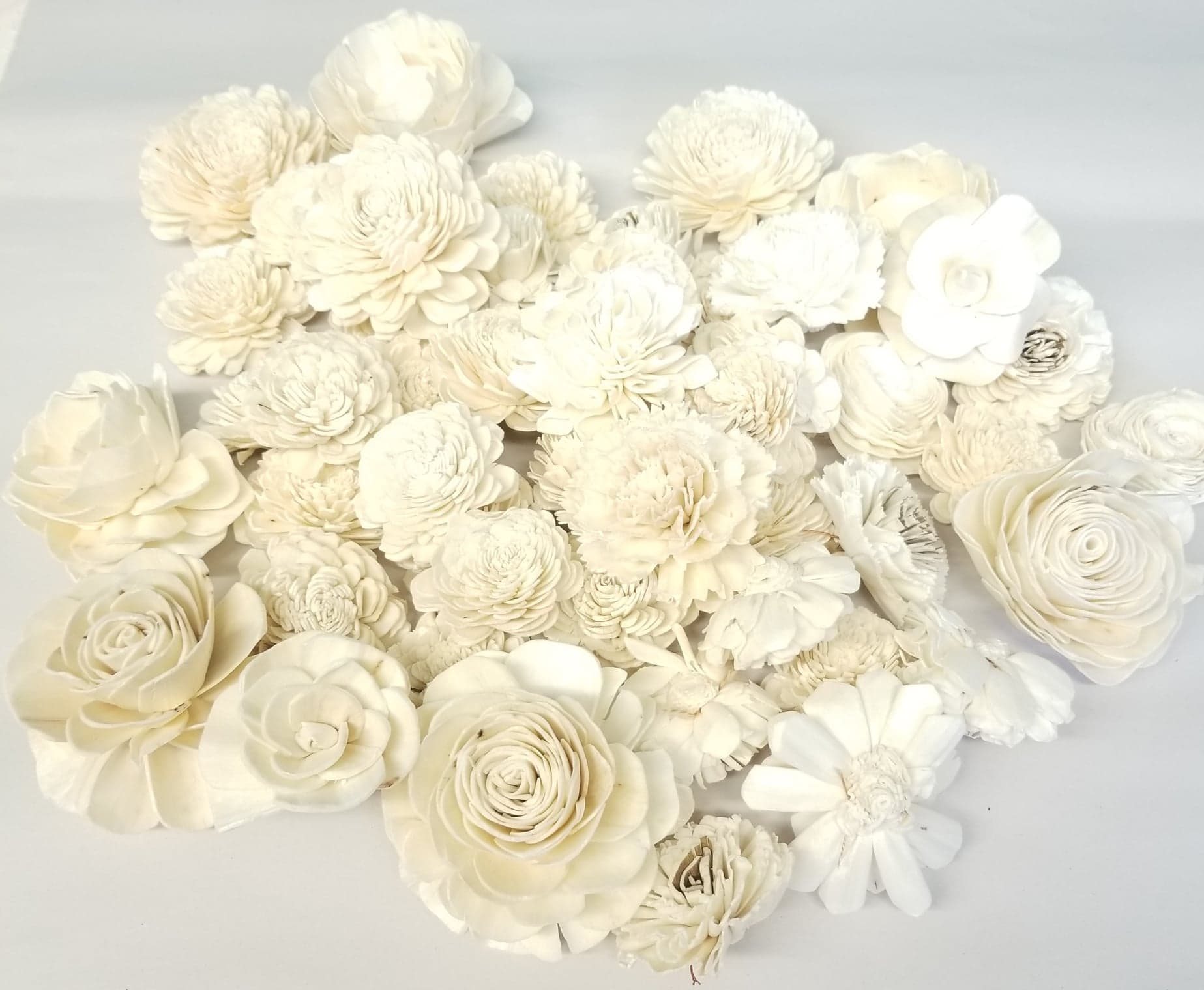 We are ready to help you stock up on some of our amazing flowers! Get yours while they last!! We have an abundance of 2" Bali's!!! so this assortment will contain a lot of our 2" Bali wood flowers mixed with Auroras, Lotus, Ravens, Tigers Eye, Twist, Carnations, Dahlia, and Kaylas!!!