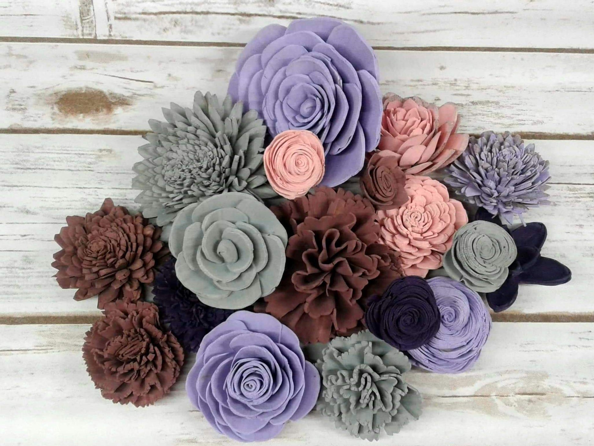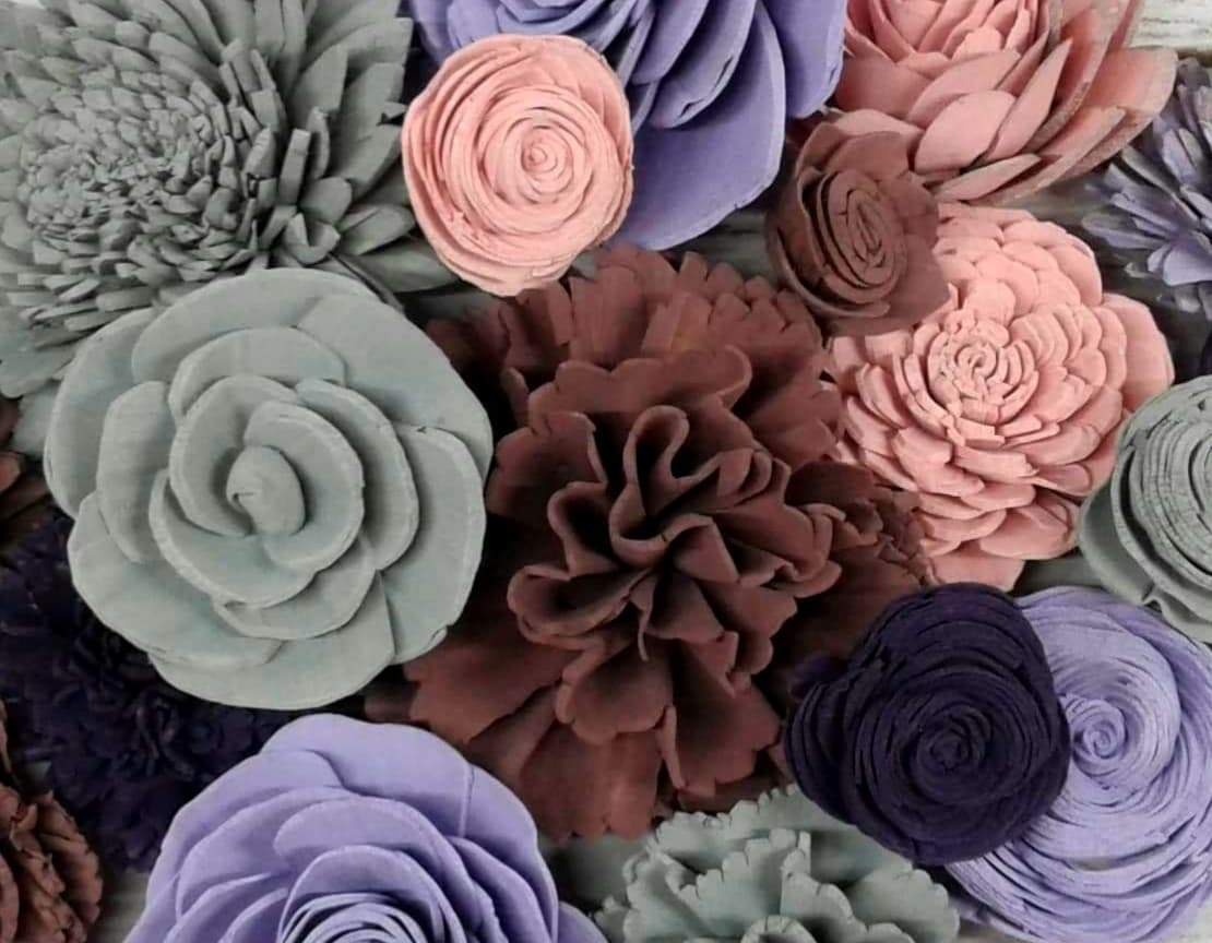 Check out this BEAUTIFUL wood flower colored assortment! With a Variety of Flowers ranging in sizes 1"-4".Make sure you pick if you would like raw flowers added to the colors in the assortment or no raw flowers.