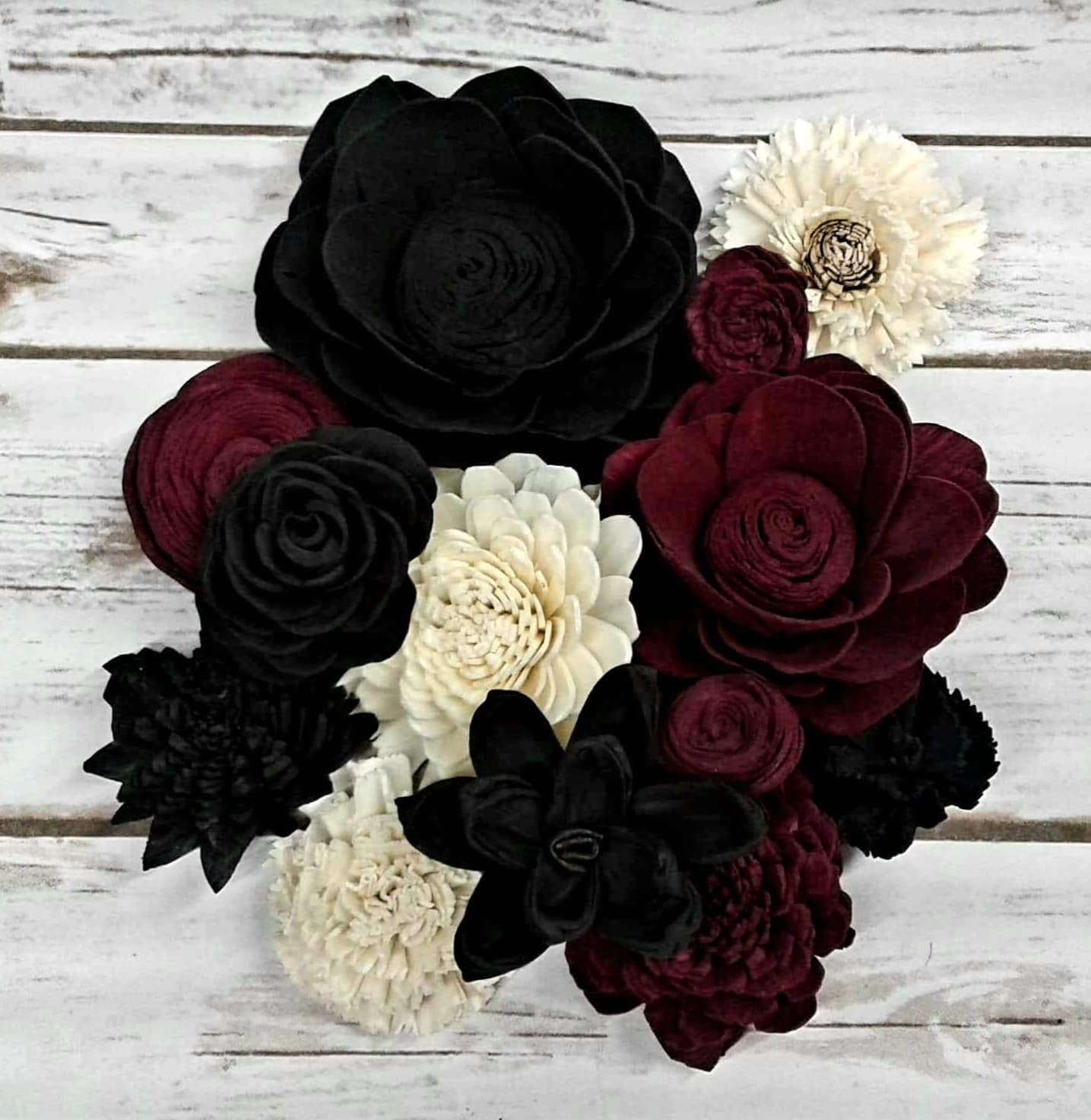 Check out this BEAUTIFUL wood flower colored assortment! With a Variety of Flowers ranging in sizes 1"-4".Make sure you pick if you would like raw flowers added to the colors in the assortment or no raw flowers.