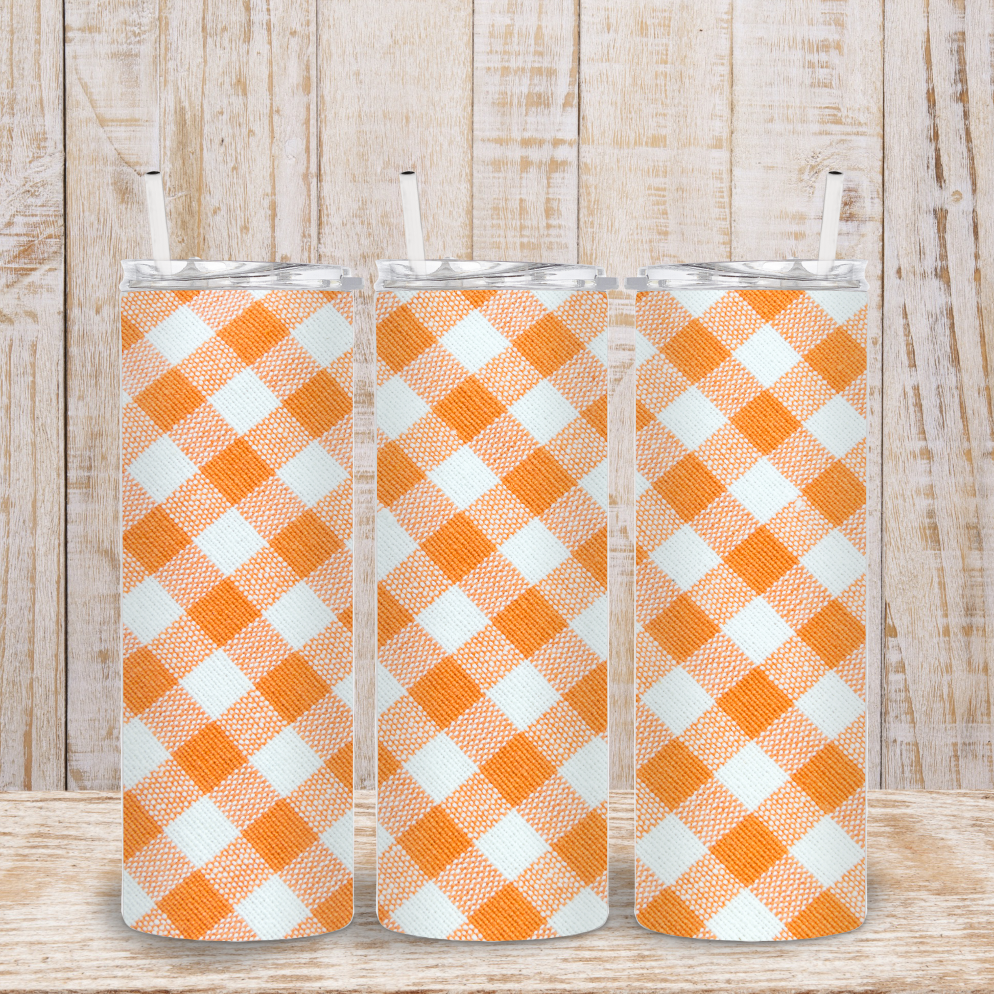 Orange Plaid Tumbler