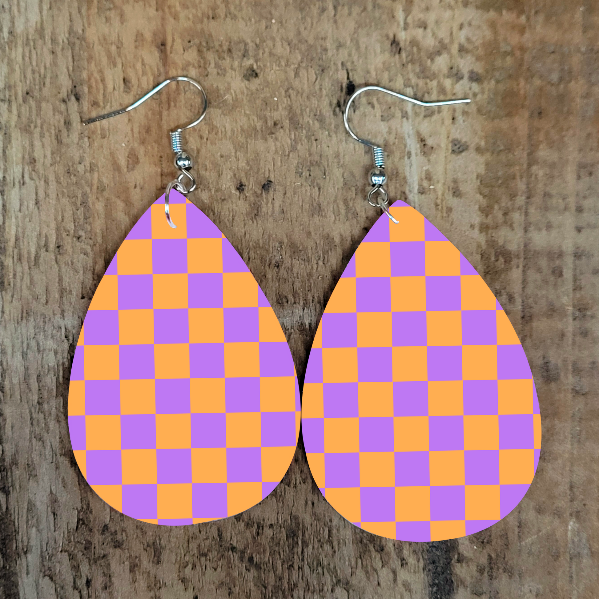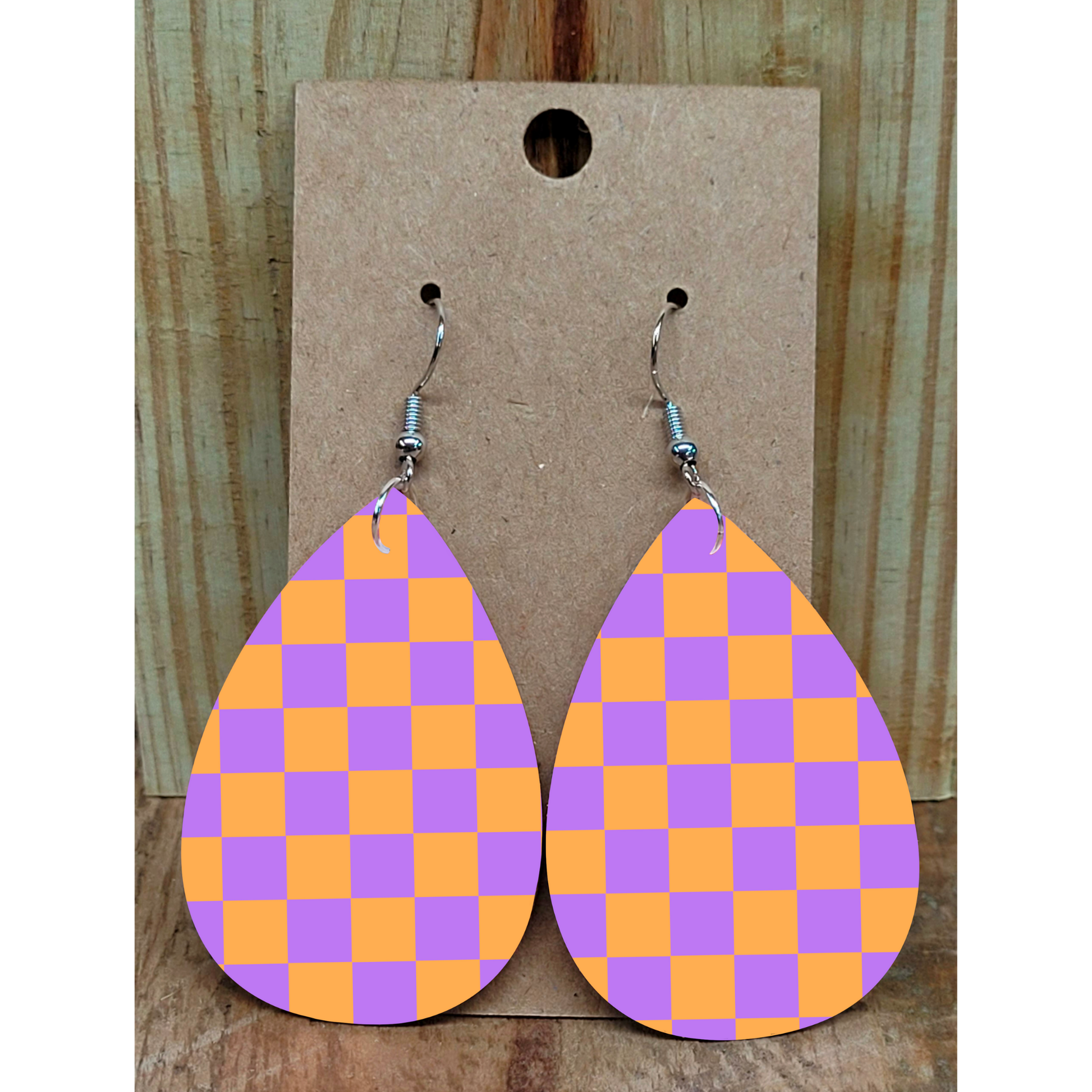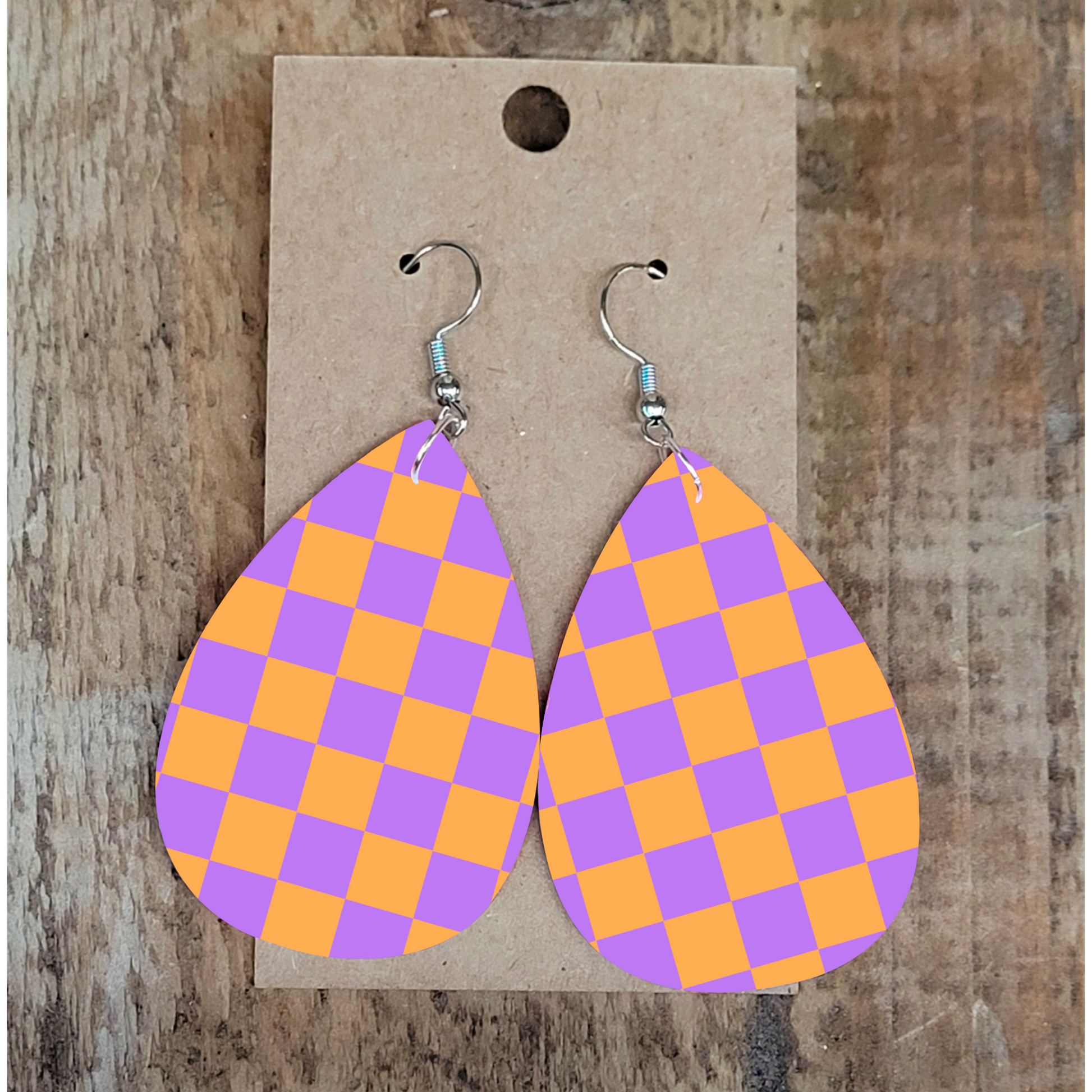 Pastel Purple Checkered Earrings