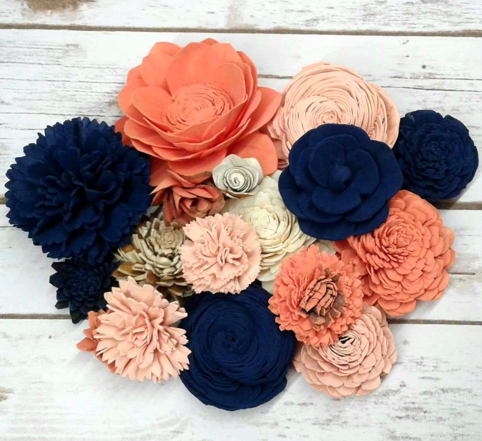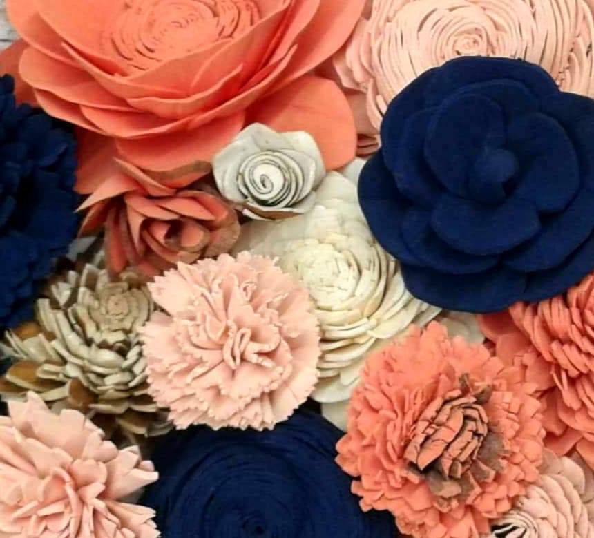 Check out this BEAUTIFUL wood flower colored assortment! With a Variety of Flowers ranging in sizes 1"-4".Make sure you pick if you would like raw flowers added to the colors in the assortment or no raw flowers.