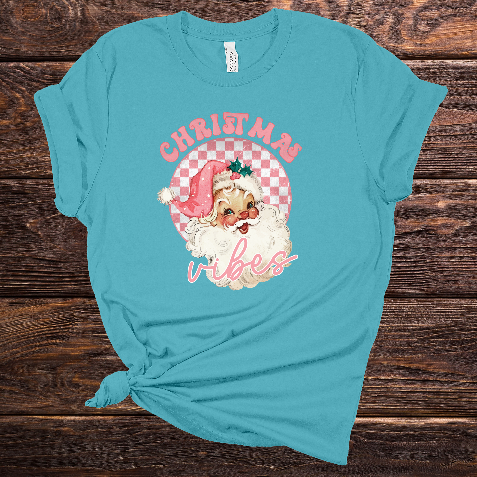 Pink Christmas Vibes Teal Graphic Tee