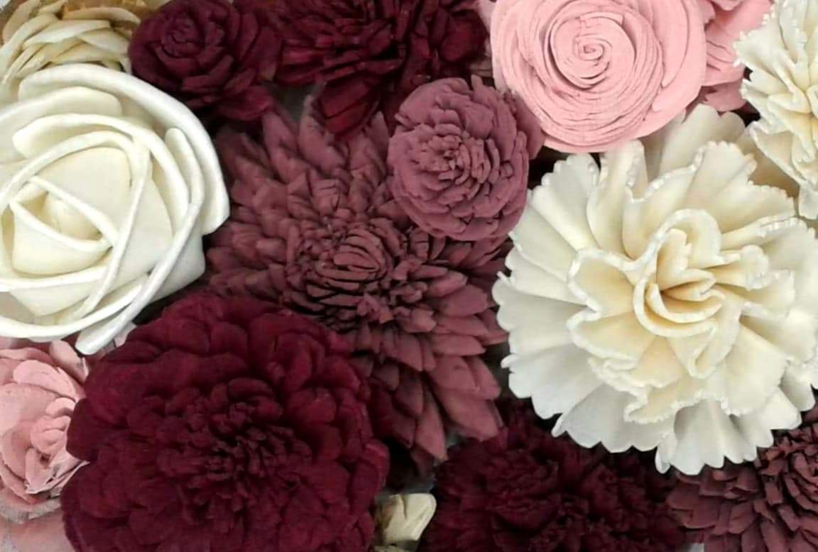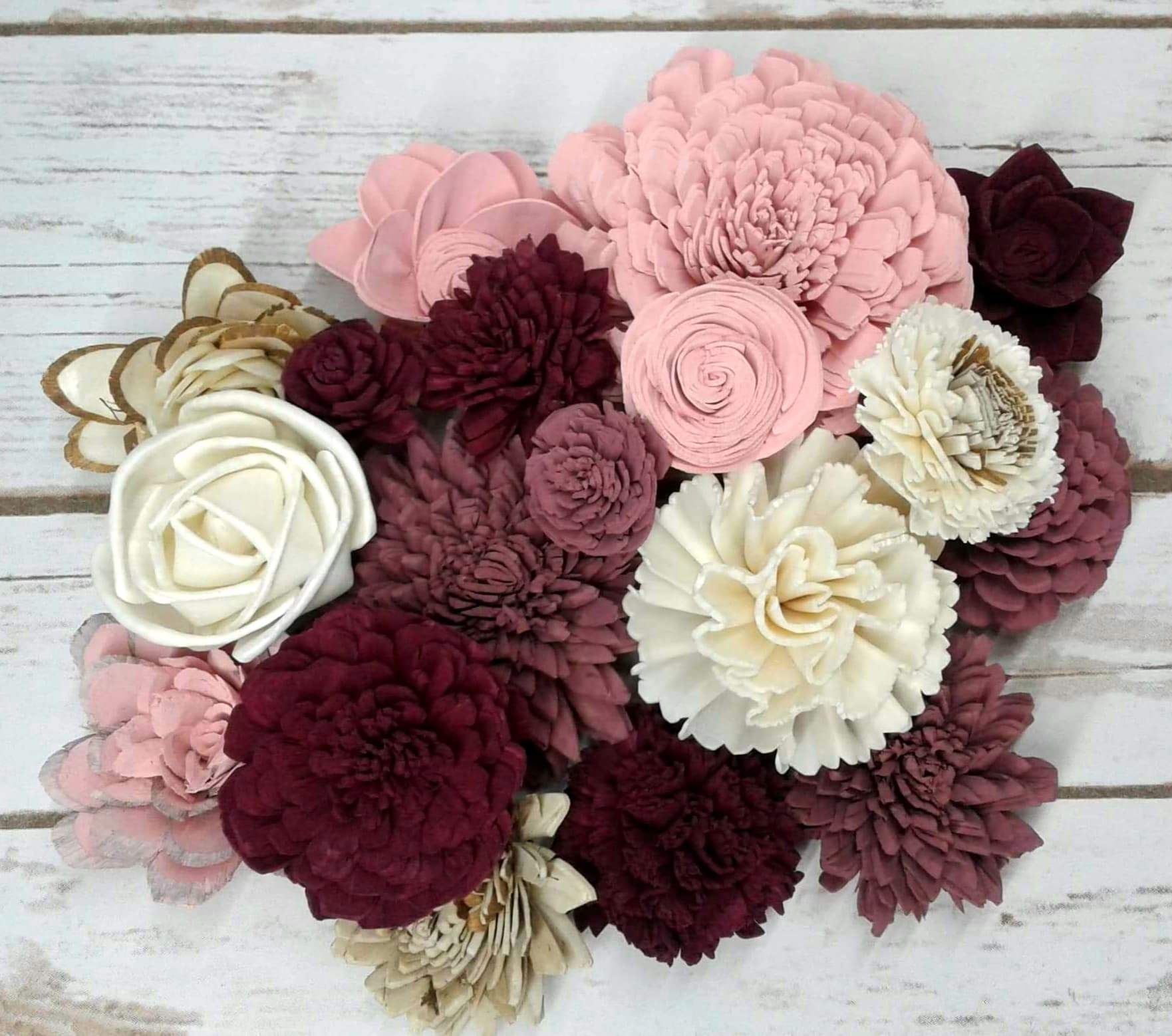 Check out this BEAUTIFUL wood flower colored assortment! With a Variety of Flowers ranging in sizes 1"-4".Make sure you pick if you would like raw flowers added to the colors in the assortment or no raw flowers.