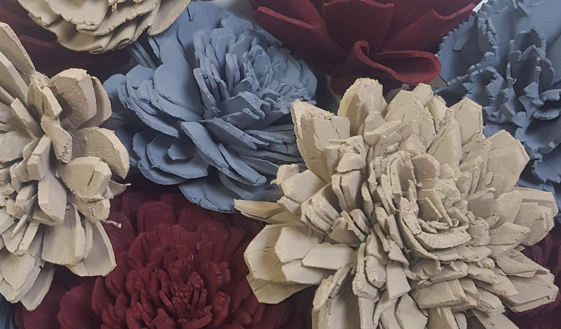 Check out this BEAUTIFUL wood flower colored assortment! With a Variety of Flowers ranging in sizes 1"-4".Make sure you pick if you would like raw flowers added to the colors in the assortment or no raw flowers.