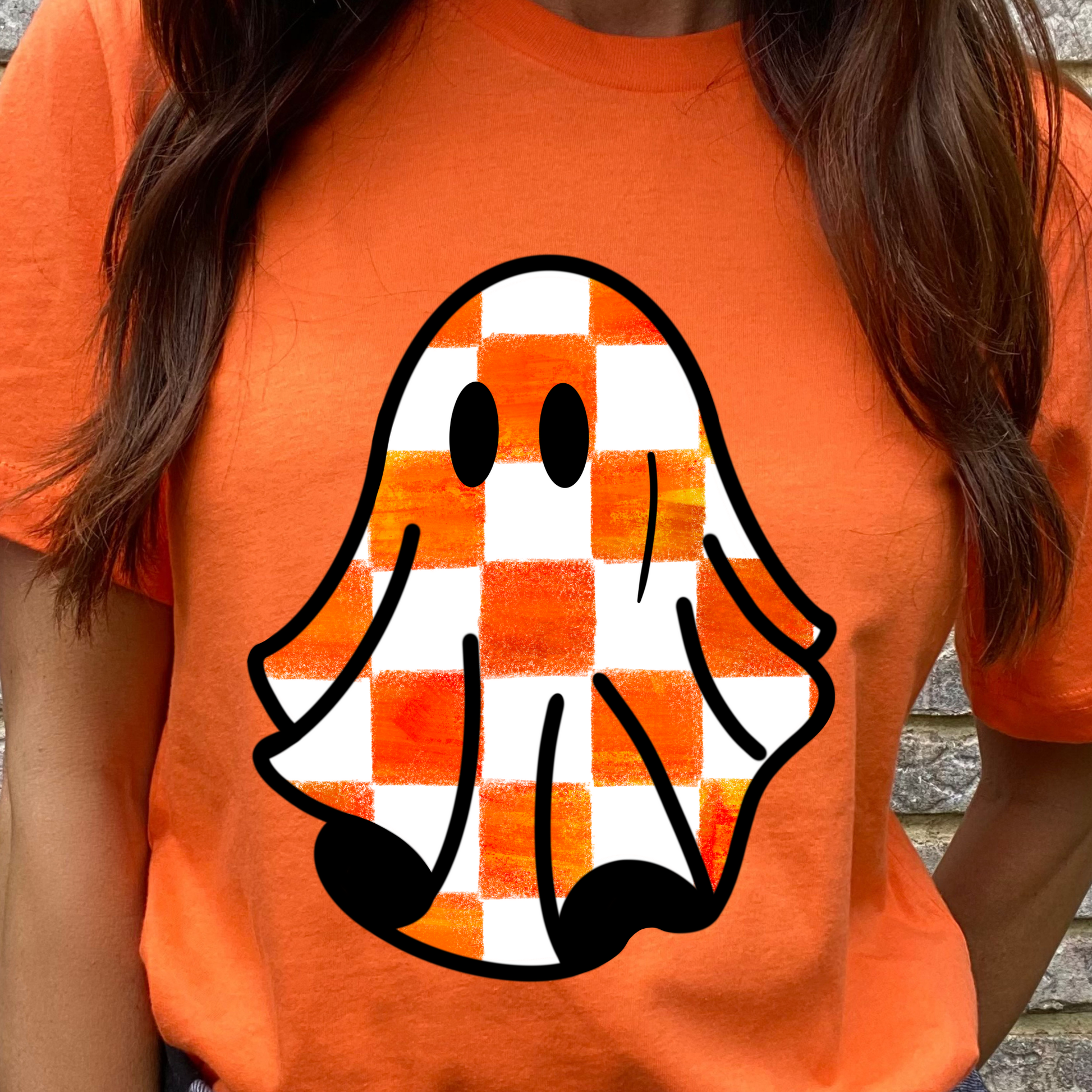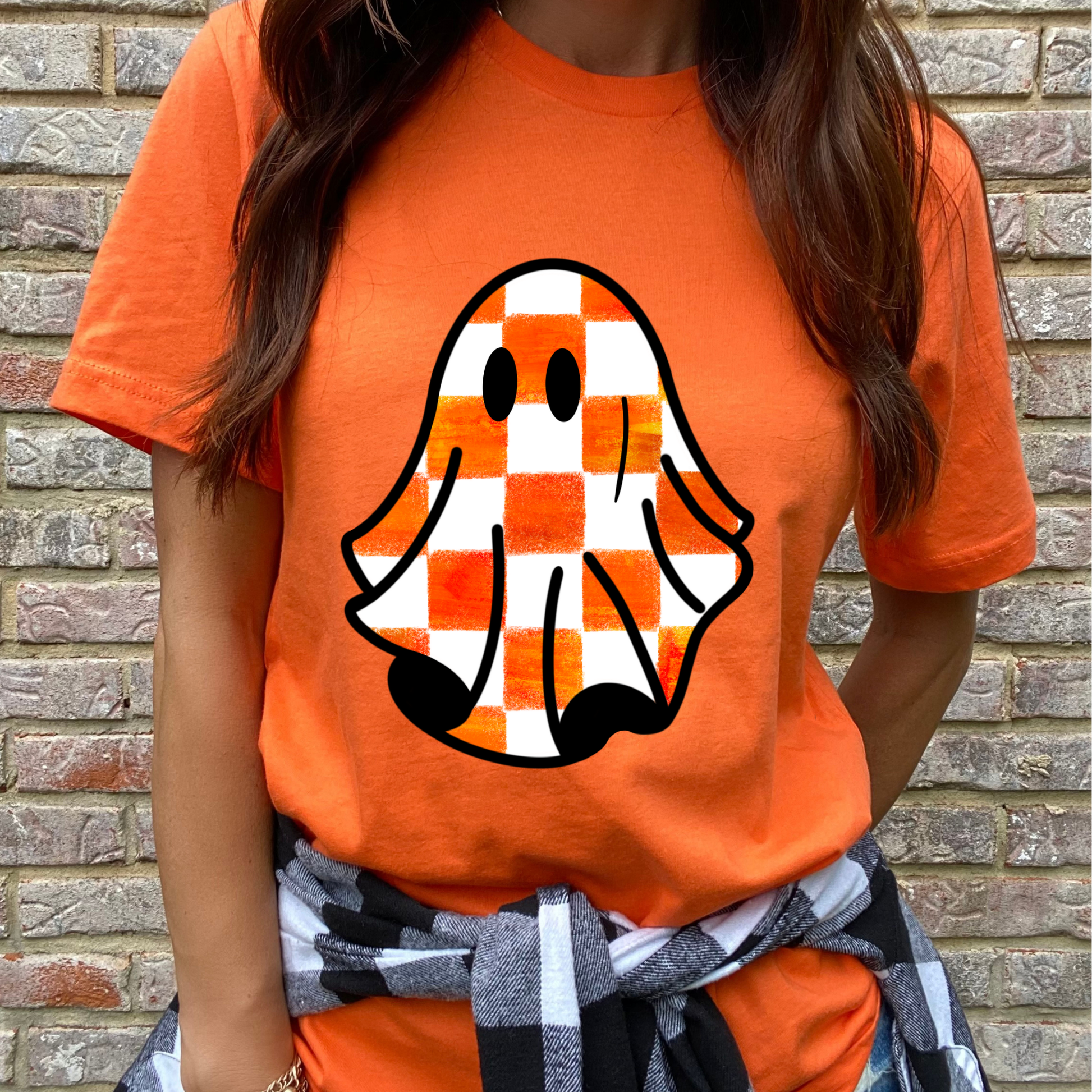Rustic Orange Checkered Ghost Orange Graphic Tee
