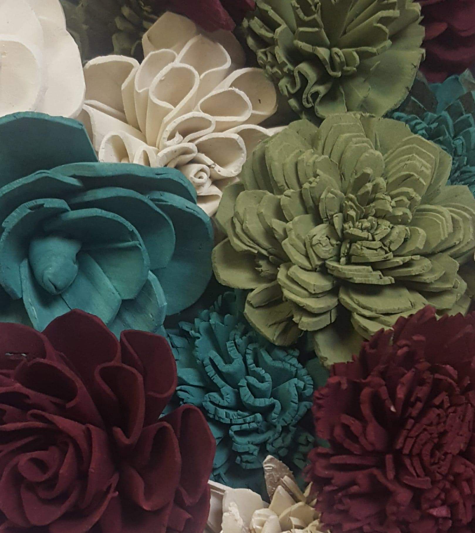 Check out this BEAUTIFUL wood flower colored assortment! With a Variety of Flowers ranging in sizes 1"-4". Make sure you pick if you would like raw flowers added to the colors in the assortment or no raw flowers.