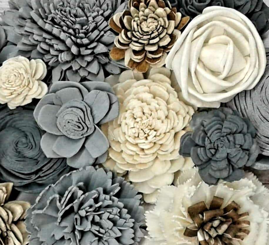 Check out this BEAUTIFUL wood flower colored assortment! With a Variety of Flowers ranging in sizes 1"-4".Make sure you pick if you would like raw flowers added to the colors in the assortment or no raw flowers.