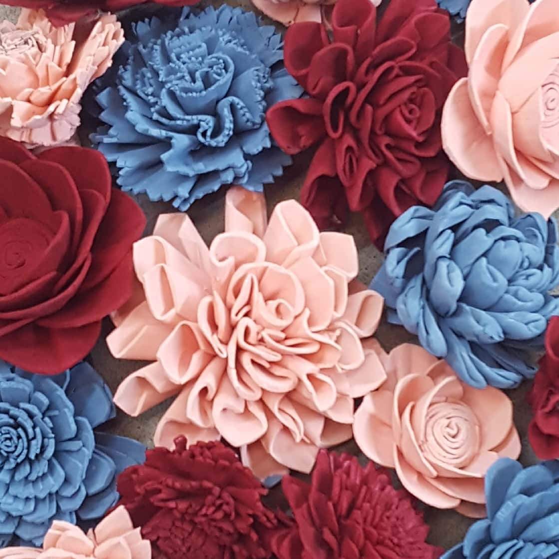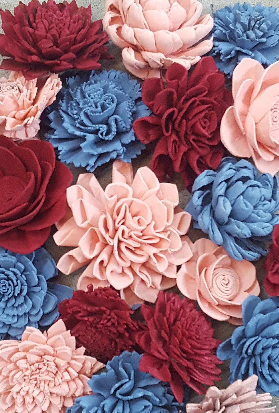 Check out this BEAUTIFUL wood flower colored assortment! With a Variety of Flowers ranging in sizes 1"-4".Make sure you pick if you would like raw flowers added to the colors in the assortment or no raw flowers.