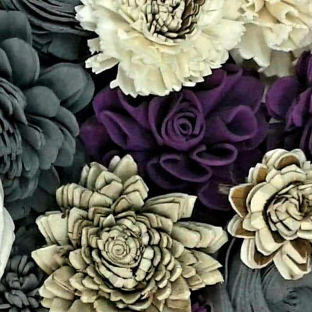 Check out this BEAUTIFUL wood flower colored assortment! With a Variety of Flowers ranging in sizes 1"-4".Make sure you pick if you would like raw flowers added to the colors in the assortment or no raw flowers.