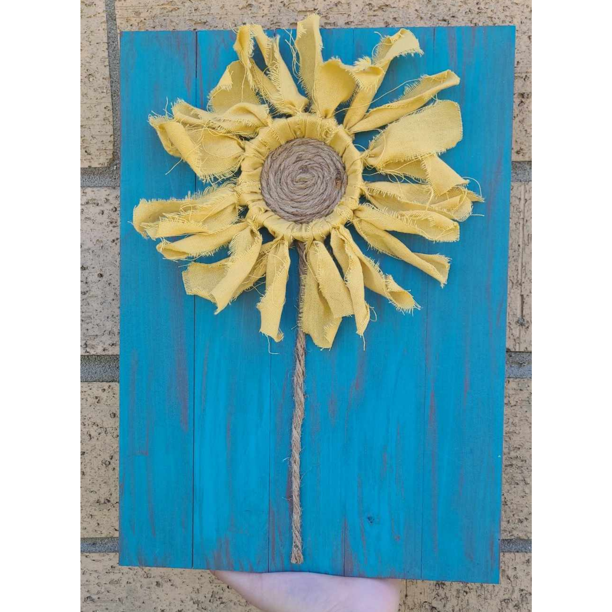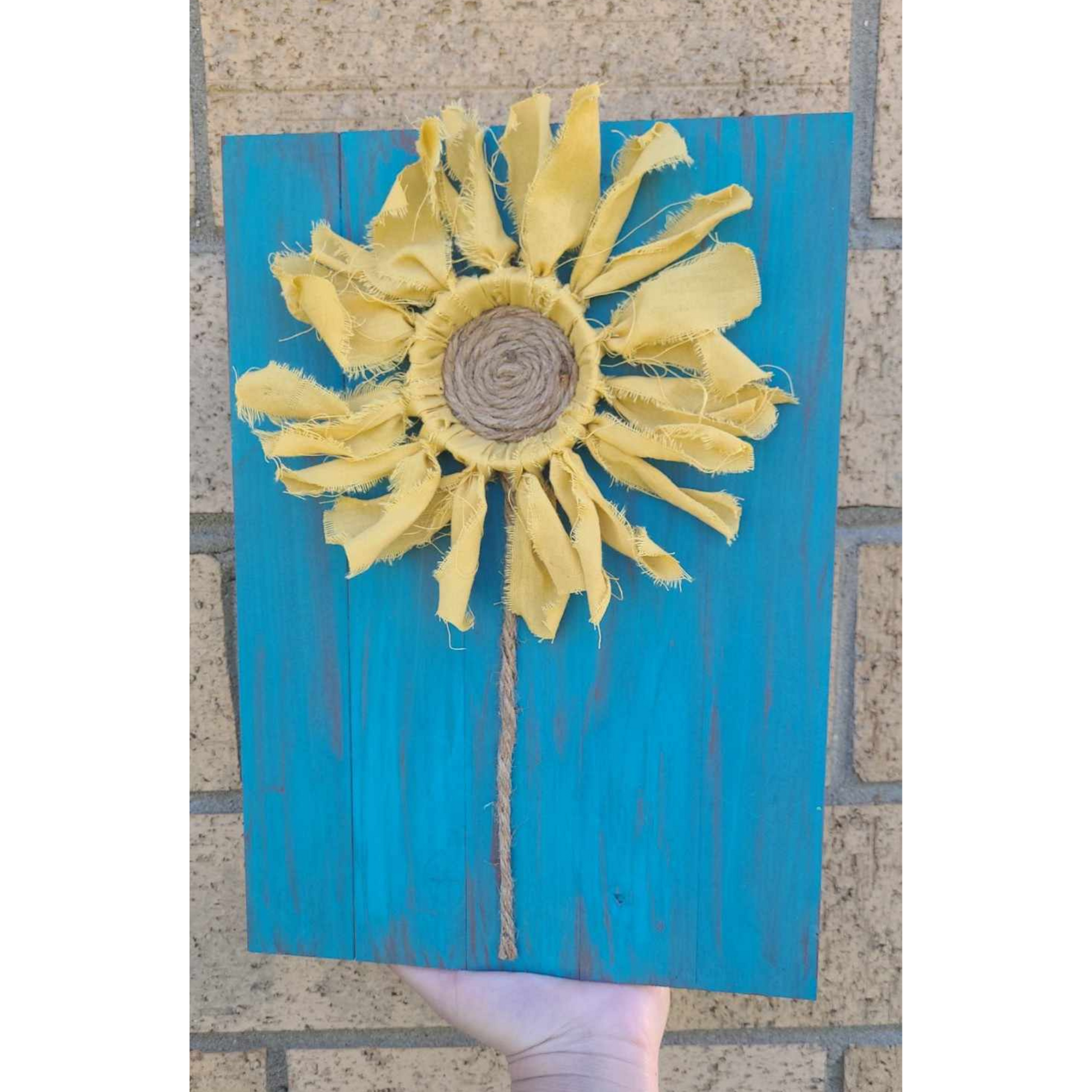 I just love this Sunflower board! All the different textures and materials, make this a unique home decor piece!