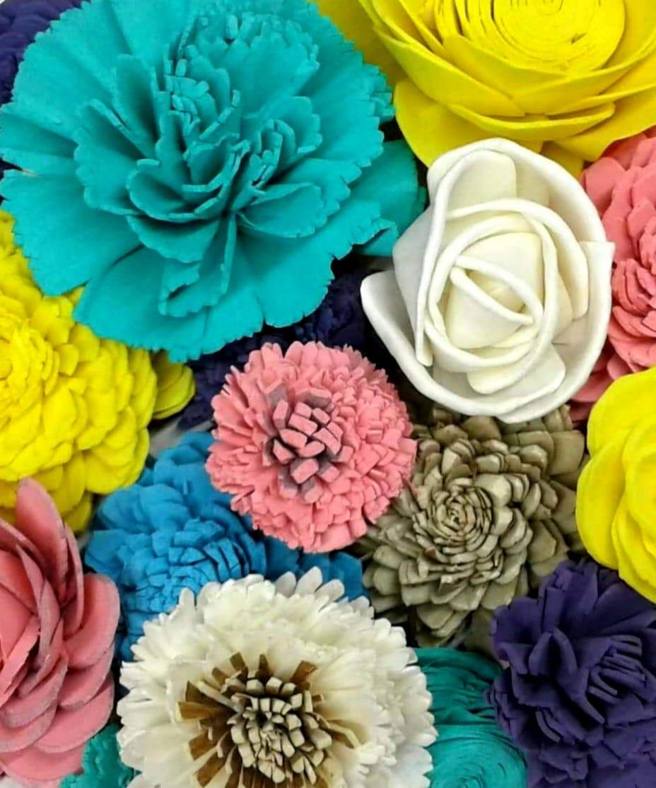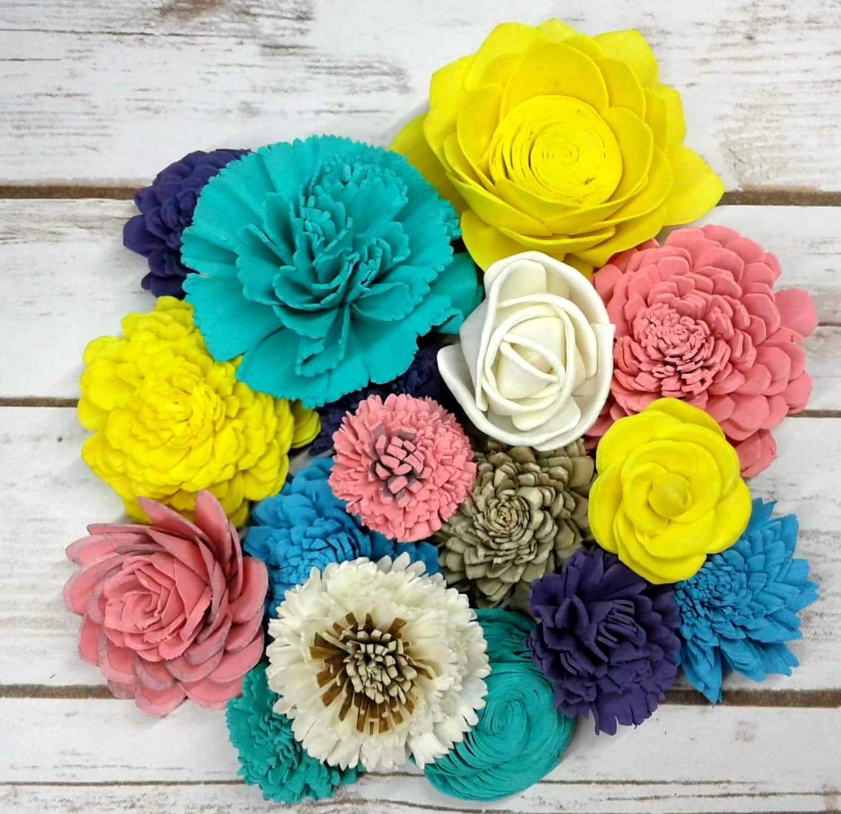 Check out this BEAUTIFUL wood flower colored assortment! With a Variety of Flowers ranging in sizes 1"-4".Make sure you pick if you would like raw flowers added to the colors in the assortment or no raw flowers.