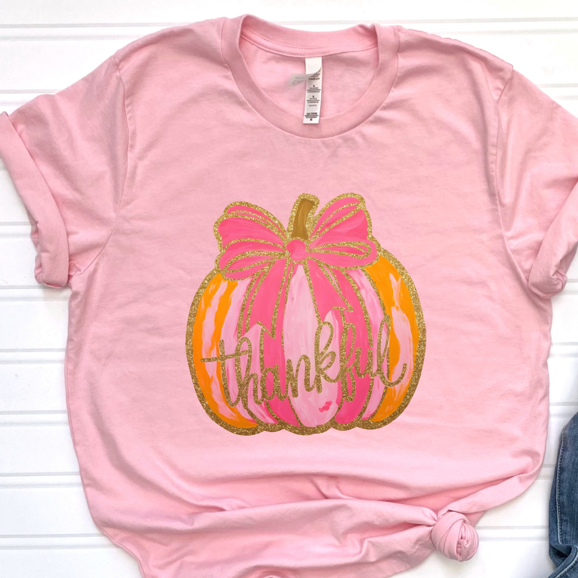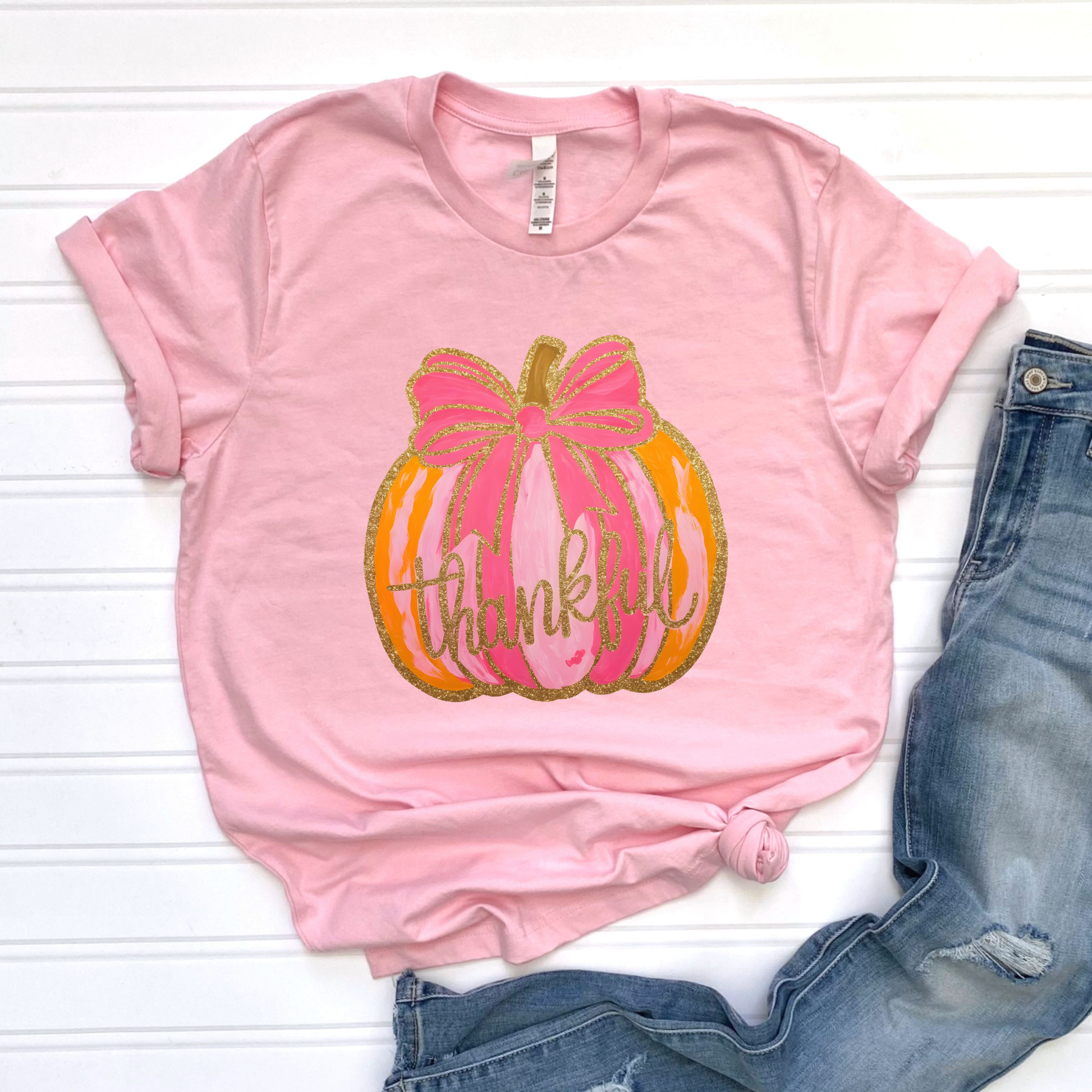 Thankful Pumpkin Pink and Orange Graphic Tee